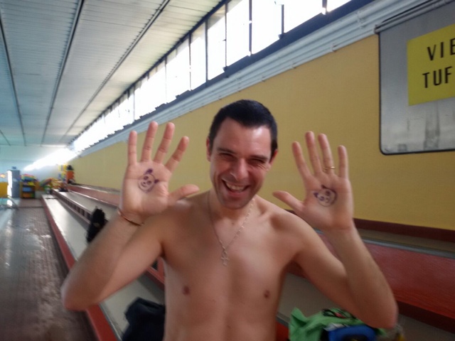 Qualche giorno fa ho chiesto ai ragazzi che alleno di disegnarsi un panda su ogni palmo della mano prima di entrare in casca in cambio di un consiglio sul nuoto che permettesse loro di guadagnare 10" sui 10mmt (10" per braccio, naturalmente).