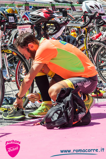 Esco dall'acqua e volo sulla salita al 20% che porta lla zona cambio.